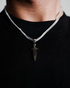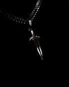 Intricately cut Chrome Dagger pendant featuring sharp, refined lines and dimensional detailing